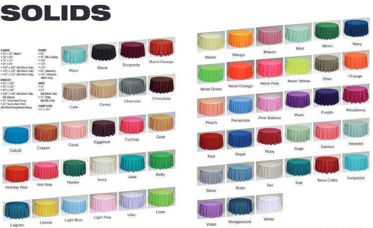 Bring a refined touch to your next event with our polyester tablecloth rentals. Designed to elevate weddings, birthday parties, corporate gatherings, and every special occasion in between, our tablecloths provide a crisp, elegant foundation for your décor. With more than 60 stunning color options, you’ll find the perfect fit for your theme. Reserve today, and we’ll connect with you to confirm your color selection.
